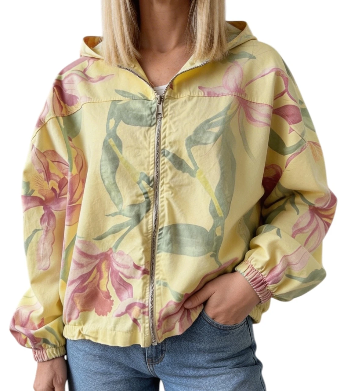 Jakki on kollast ja kreemikat värvi.