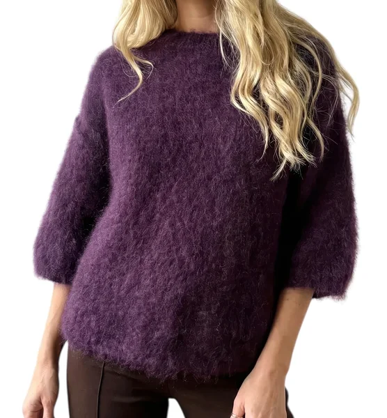 Värvidest on lilla, helebeež, tumebeež ja pruun. Kampsun sobib suurusele S-L.